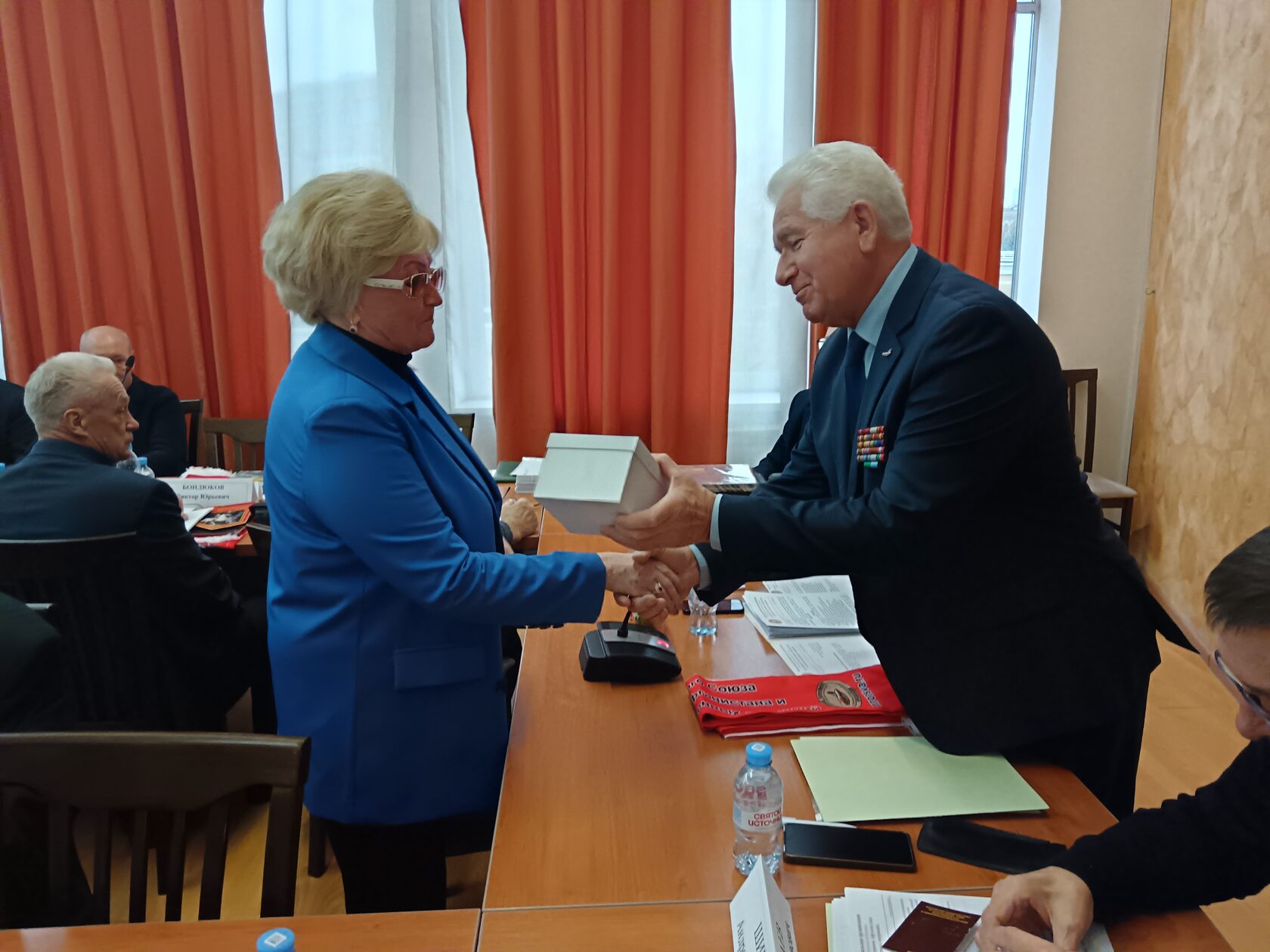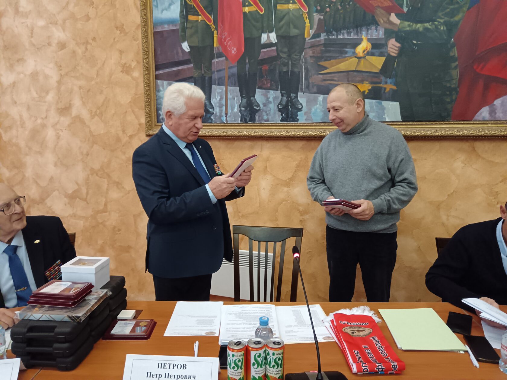 На заседании Петр Петров подвел итоги работы организации за текущий год, провел награждение наиболее активных членов организации медалями и ценными подарками, ознакомил участников заседания, с основными вопросами выносимыми на заседание.