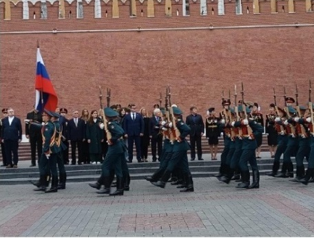 23 августа 2025 года в Александровском саду состоялась торжественная церемония возложения венков к Могиле Неизвестного Солдата и корзин с цветами к Памятному знаку городам воинской славы России, организованная Комитетом общественных связей и молодежной политики города Москвы.