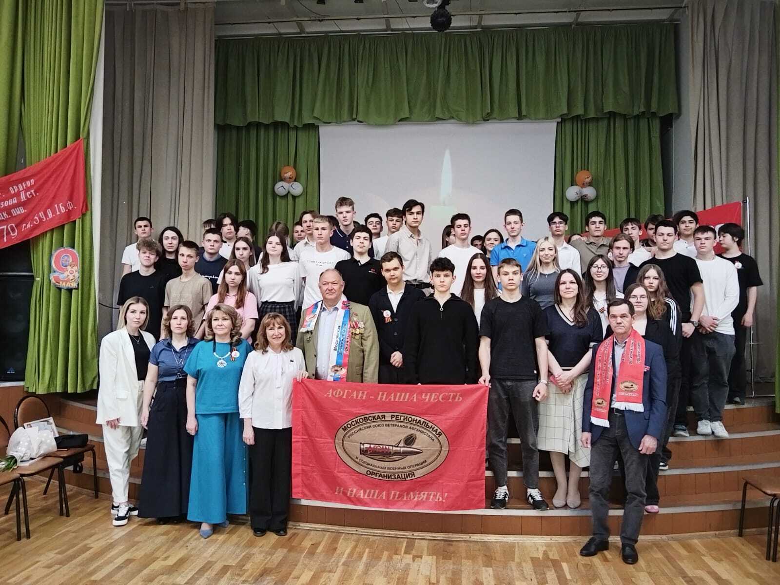 С ребятами 9-х классов ГБОУ Школа № 1358 встретились ветераны боевых действий, члены Московской региональной организации «Российский Союз ветеранов Афганистана и специальных военных операций» района Митино Рамазанов Ринат Халимович и Иванов Виктор Васильевич.