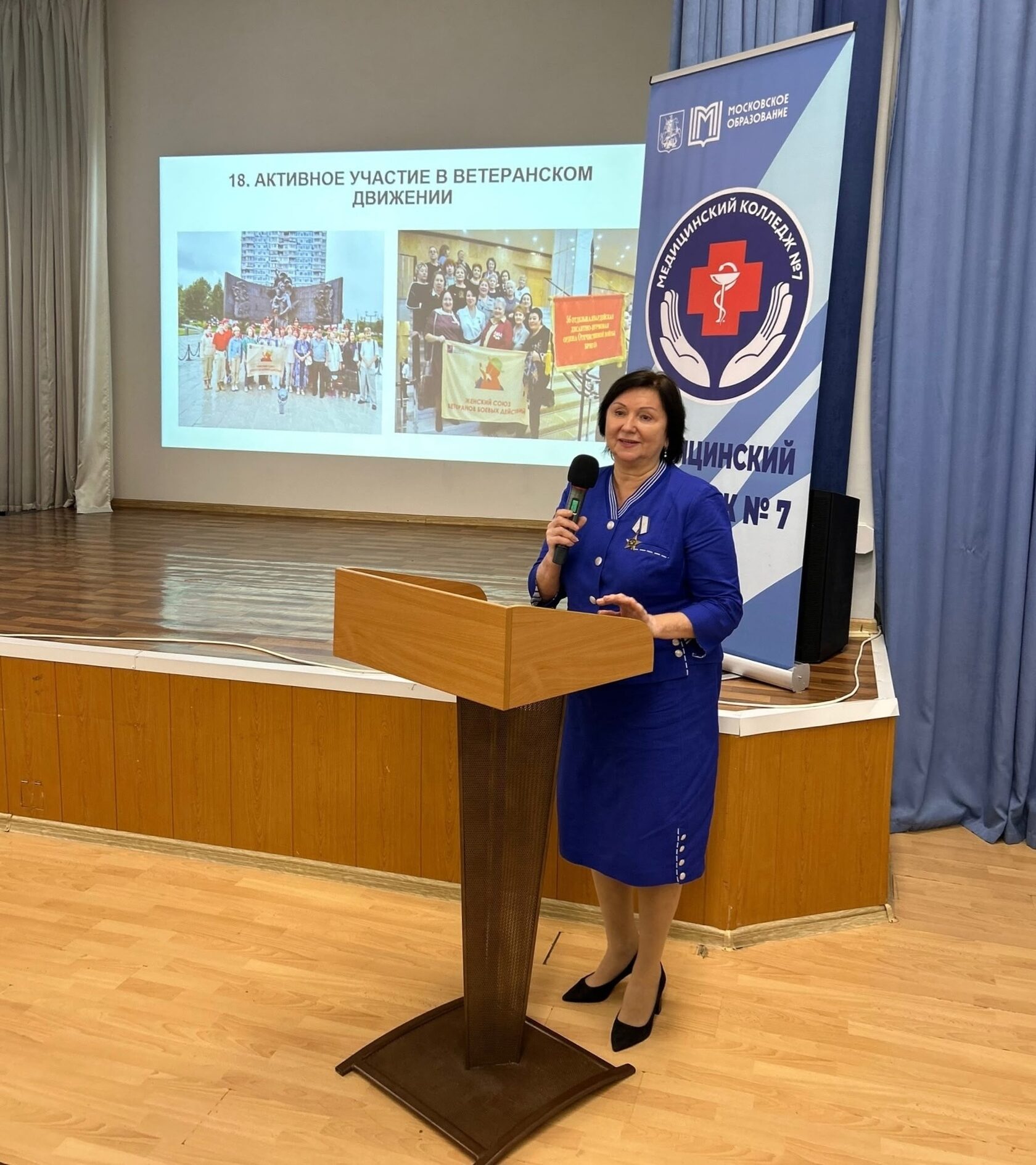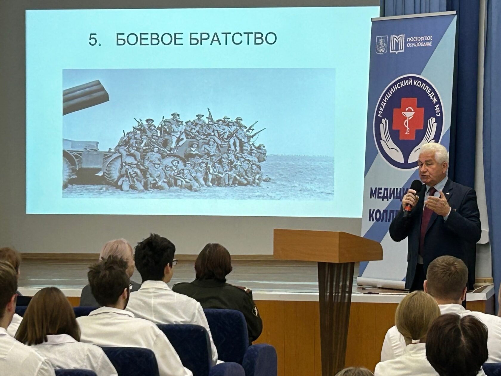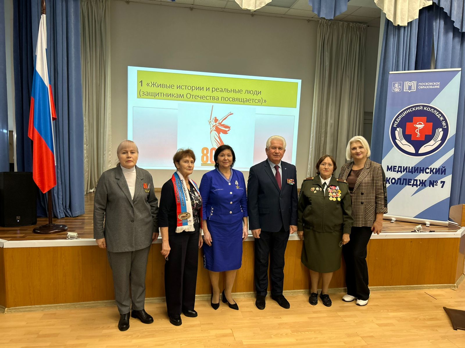 5 ноября 2025 года в Московском медицинском колледже №7 для студентов 1 и 3 курсов специальности «Лечебное дело» прошёл Урок мужества из цикла «Живые истории и реальные люди», посвящённый 80-летию Победы в Великой Отечественной войне.