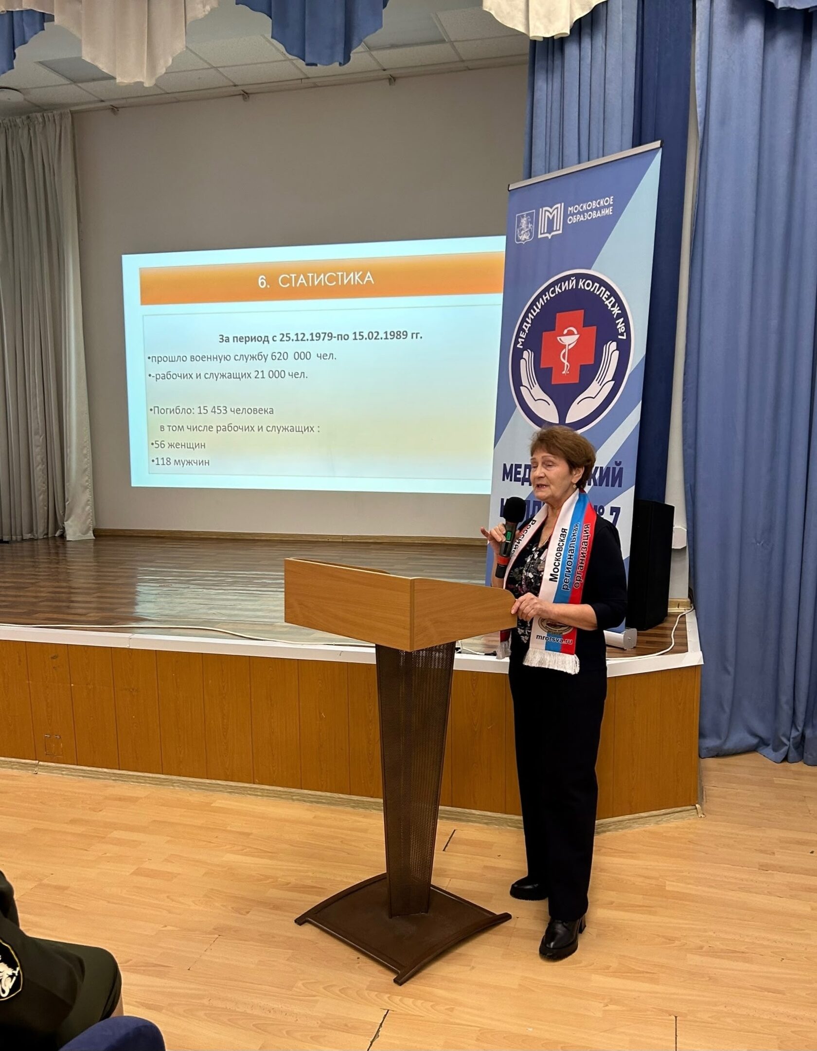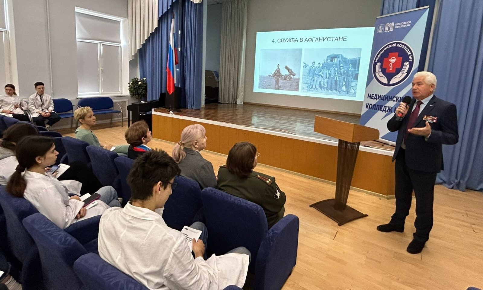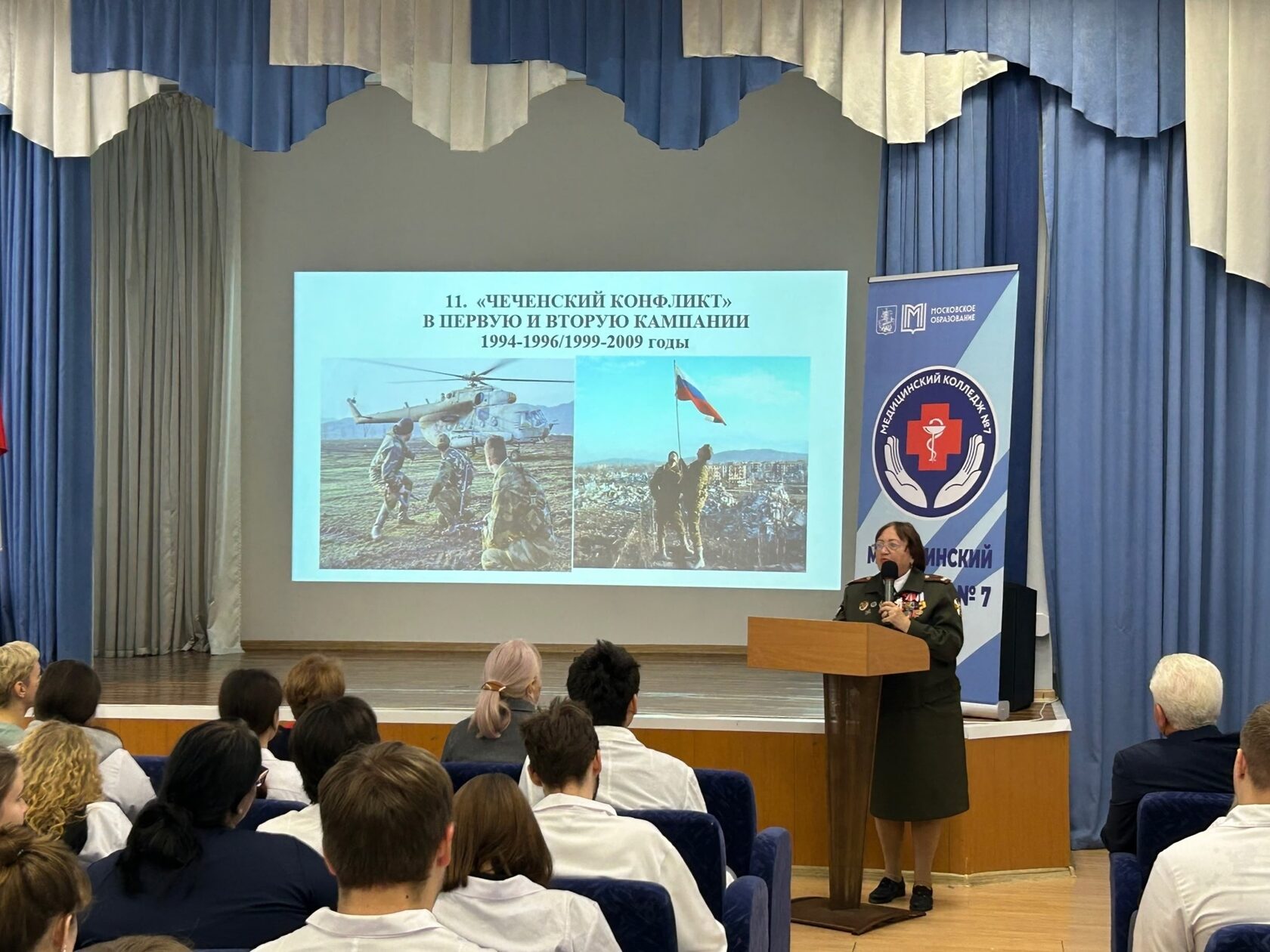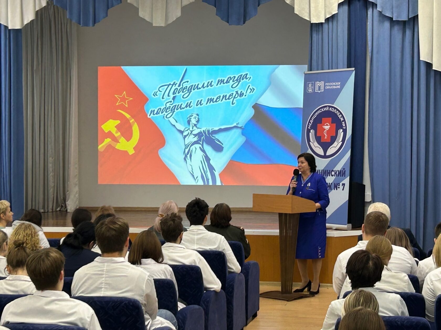 5 ноября 2025 года в Московском медицинском колледже №7 для студентов 1 и 3 курсов специальности «Лечебное дело» прошёл Урок мужества из цикла «Живые истории и реальные люди», посвящённый 80-летию Победы в Великой Отечественной войне.