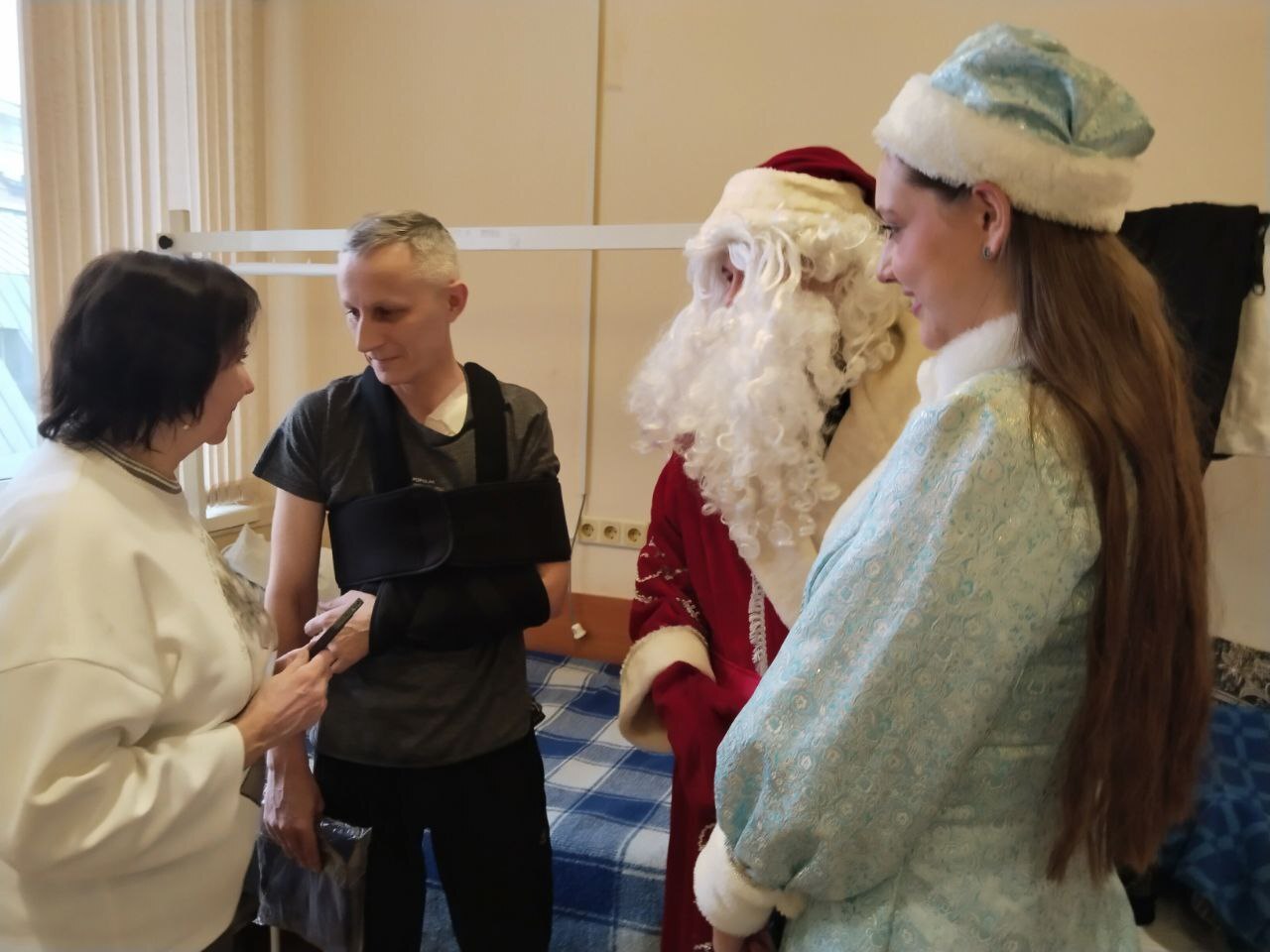 22 декабря 2025 года поздравить с наступающим Новым годом, подарить частичку домашнего тепла, проходящих лечение в военном клиническом госпитале Н. Бурденко раненным бойцам, приехала представительная делегация: