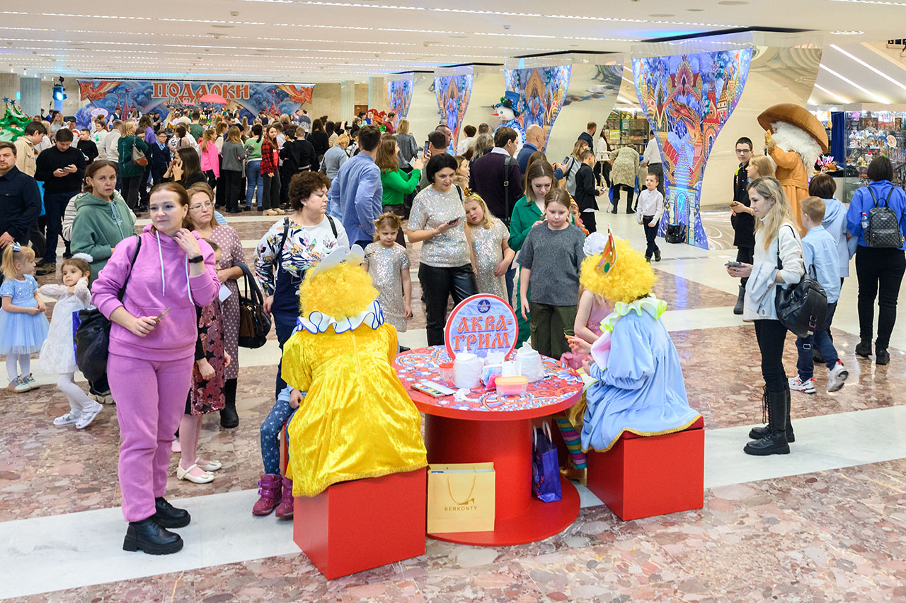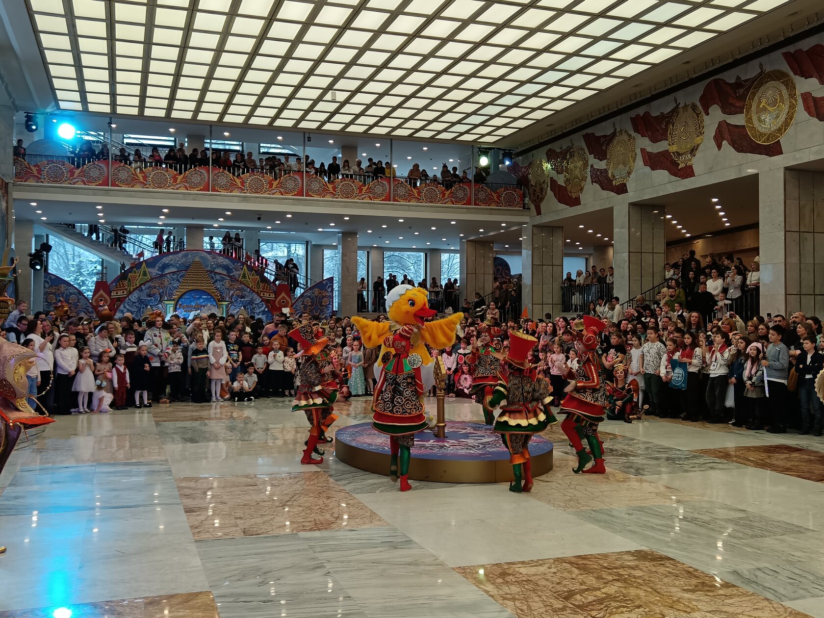 В Паркетном фойе «Время карнавала». Работали сразу три площадки, в шоу — артисты цирка, иллюзионисты и фольклорные коллективы.