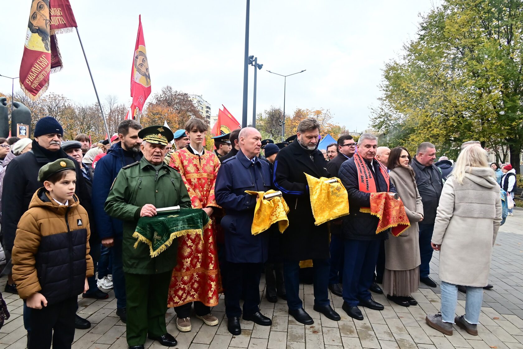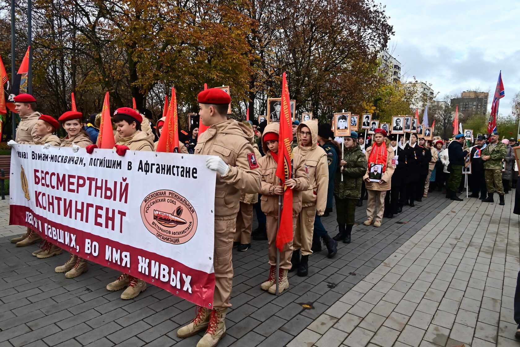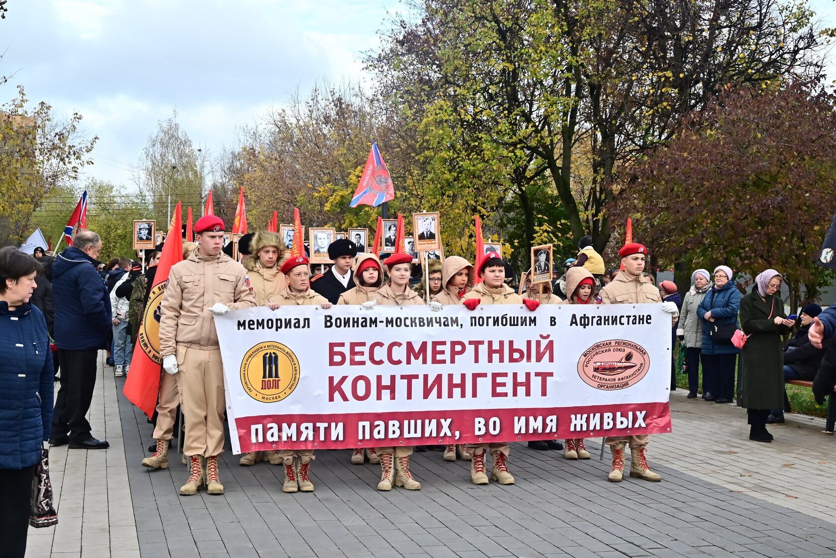 Началось мероприятие с шествия колонны, возглавил которую "Бессмертный контингент" с портретами воинов-интернационалистов, погибших в Афганистане.